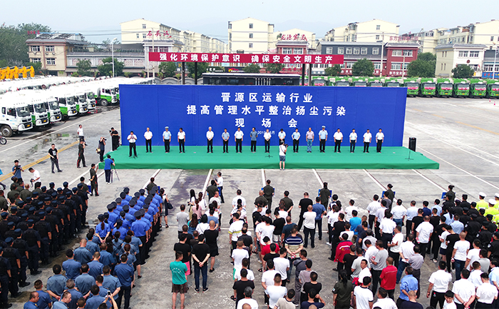 6月27日上午,晉源區(qū)運輸行業(yè)“提高管理水平、整治揚塵污染”現(xiàn)場會在康培園林工程機(jī)械部舉行。晉源區(qū)委書記楊繼承,區(qū)長李永強(qiáng)等主要領(lǐng)導(dǎo)及市、區(qū)、街鎮(zhèn)相關(guān)部門負(fù)責(zé)人和晉源區(qū)所有渣土運輸、商砼、物流企業(yè)350余人參加了會議。